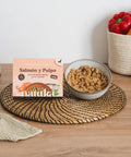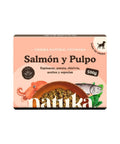 Descubre el menú COCINADO de pulpo y salmón, una receta variada de alta calidad y frescura, elaborada con ingredientes 100% naturales. Original y diseñado para satisfacer las necesidades nutricionales de tu perro, este menú contiene salmón, pulpo, chirívía, patatas, espinacas, aceite de salmón, aceite de oliva y eneldo ofreciendo una dieta completa y equilibrada. Elaborado sin conservantes.