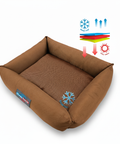 Una cama reversible con tecnología inteligente que mantiene el frescor en verano y el calor en invierno. Con materiales resistentes por fuera y confort absoluto por dentro, es la guarida ideal para lobitos exigentes.