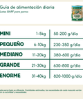 La ración es aproximada, por lo que debe ajustarse según las necesidades de cada perro (ejercicio, actividad, metabolismo, etc.).