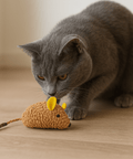 Ratón de plush/chenilla (textura tipo noodle) para caza indoor: ligero, blando y fácil de patear, atrapar y transportar. Doble estímulo olfativo con catnip en el cuerpo y palito de Matatabi (silvervine) sujeto a la cola.