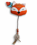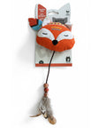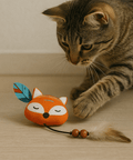 Peluche ligero con forma de zorro para caza indoor. Relleno con catnip y matatabi (silvervine) para doble estímulo natural que activa olfato, curiosidad y juego. La cola dinámica (cordón + cuentas de madera + pluma natural) añade movimiento y textura, despertando el instinto cazador.
