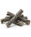 Rollitos de piel de bacalao deshidratada para perros. Altos en proteína, bajos en grasa y con textura crujiente que invita a masticar. Sin azúcares añadidos, sin colorantes ni conservantes artificiales. Peso: 55 g. Aroma intenso (pescado real)