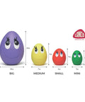 HUEVO DE LATEX LANCO. ¡LOS CLÁSICOS NUNCA FALLAN! DE COLORES VIVOS, TACTO SUAVE Y CON UN PEQUEÑO PITO QUE AL APRETARLOS PRODUCE UN DIVERTIDO SONIDO.