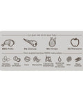 Composición: Pechuga de pollo (42%), carcasa de pollo (15%), caldo de pollo (9,4%), corazón de pollo (7%), hígado de pollo (5,6%), chirivía (7%), hinojo (6%), manzana (3%), semillas de girasol, yema de huevo, coco, manzanilla, cáscara de escaramujo, aceite de hígado de bacalao, miel, ascophyllum nodosum (algas marinas), sal de mar.